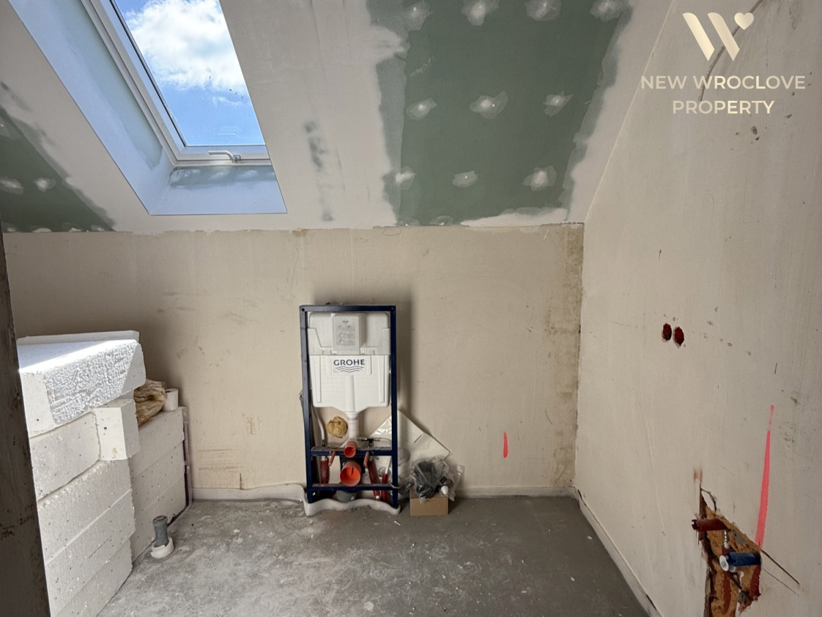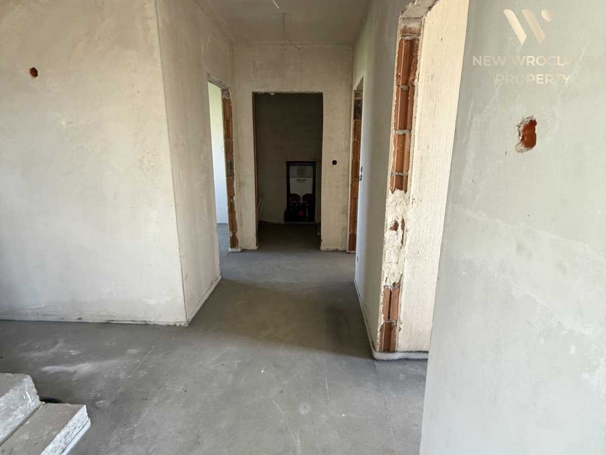 Dom w stanie deweloperskim, ogrzewanie podłogowe, piec dwufunkcyjny gazowy, na ścianach gładzie.
