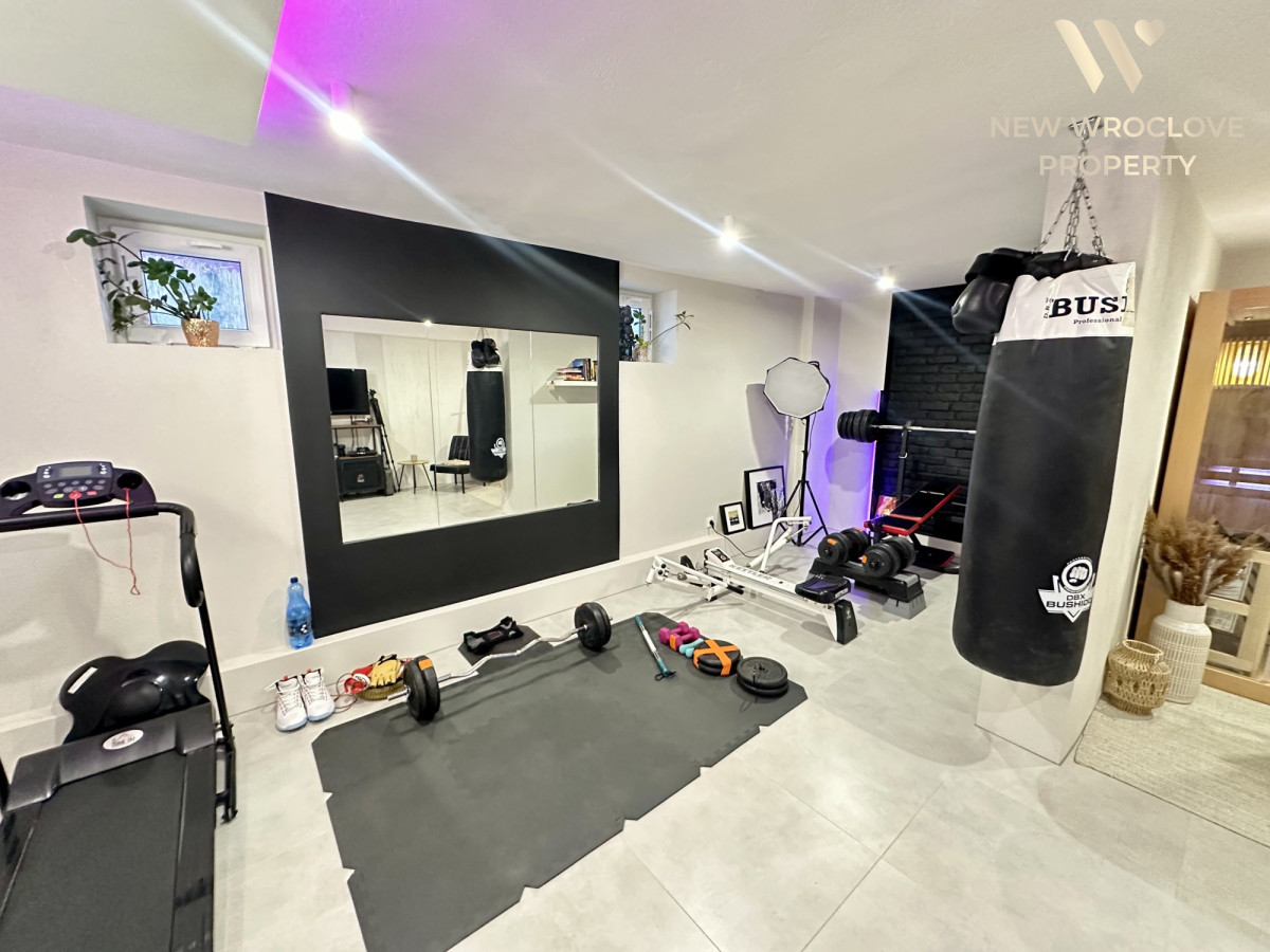 Układ pomieszczeńPiwnica: sauna, siłownia, duża łazienka z prysznicem, pomieszczenie techniczne
