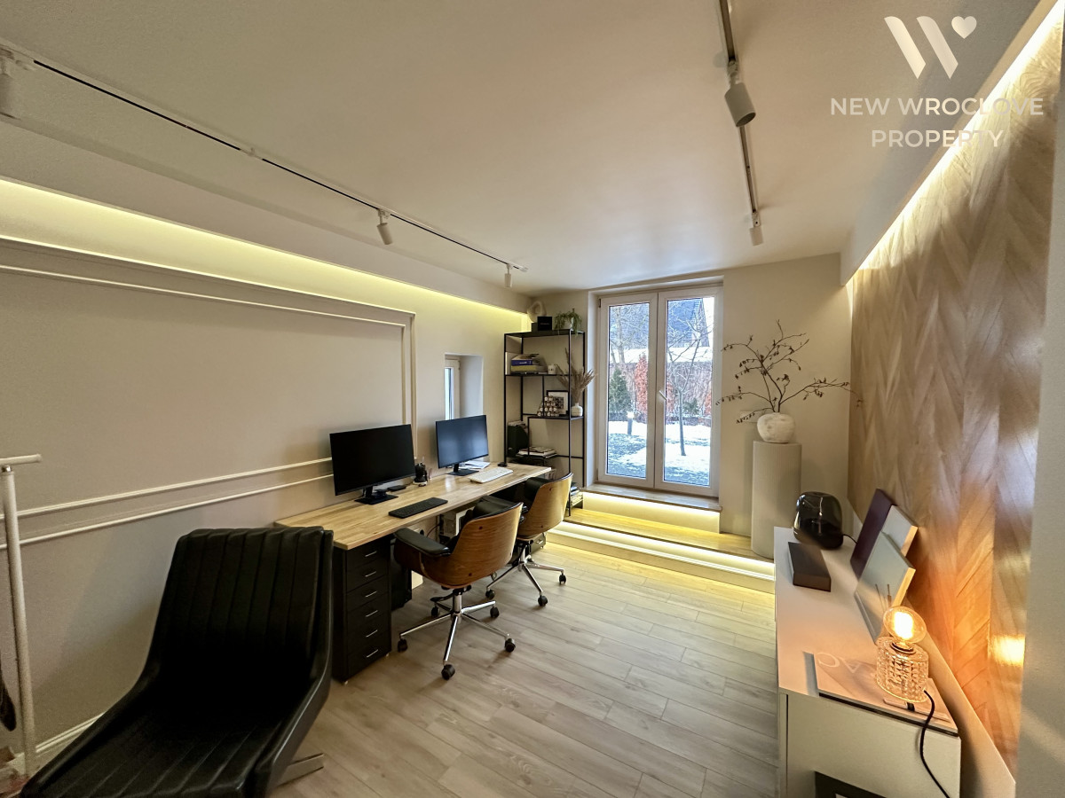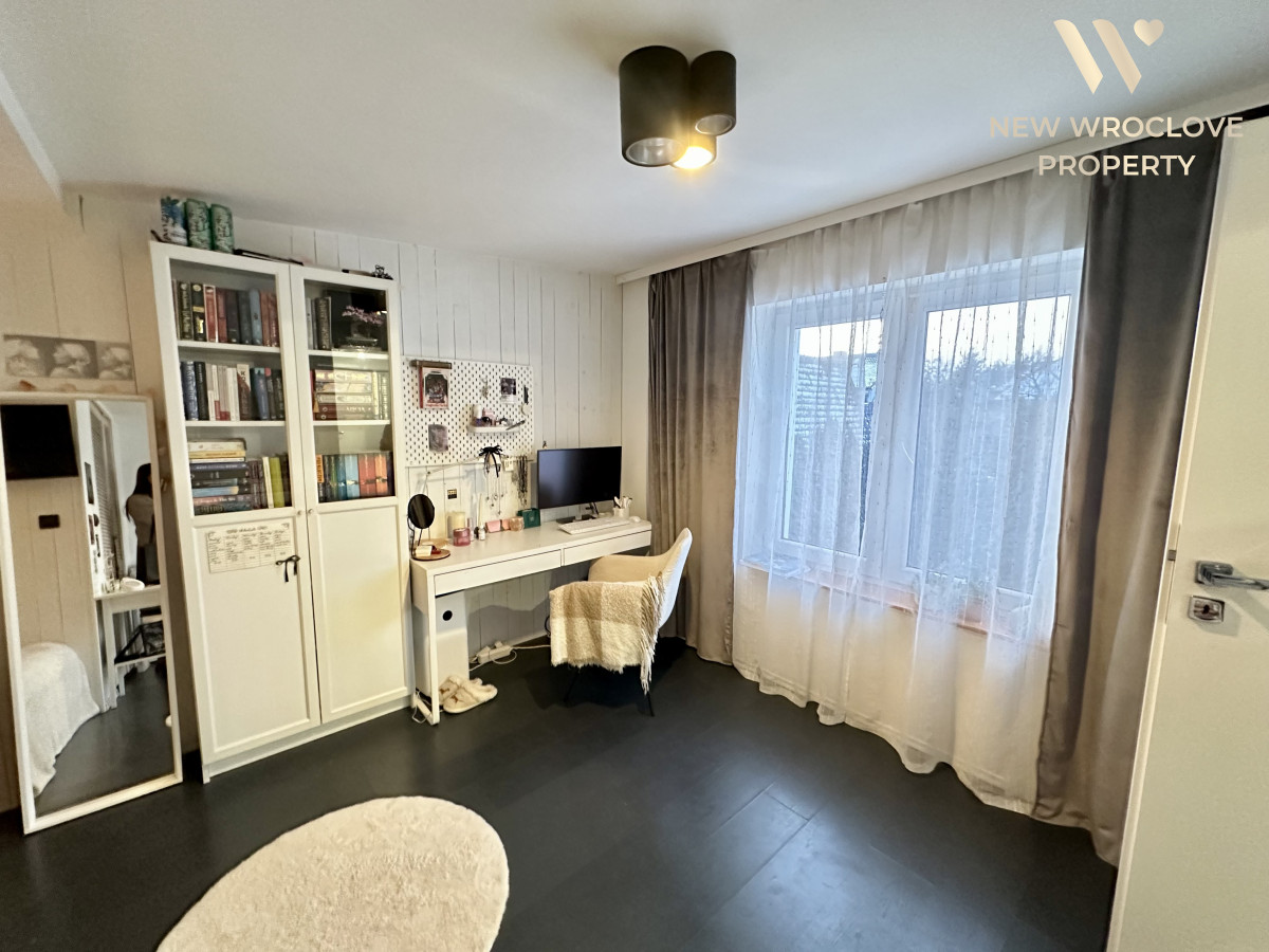 Komfortowy dom z basenem i strefą wellness | Wrocław / MirkówNa sprzedaż nowoczesny, wolnostojący dom o powierzchni ok. 189 mkw, położony na 800‑metrowej działce w zielonej, spokojnej okolicy przy granicy Wrocławia i Mirkowa. Nieruchomość idealna zarówno do życia rodzinnego, jak i prowadzenia działalności lub pracy zdalnej.