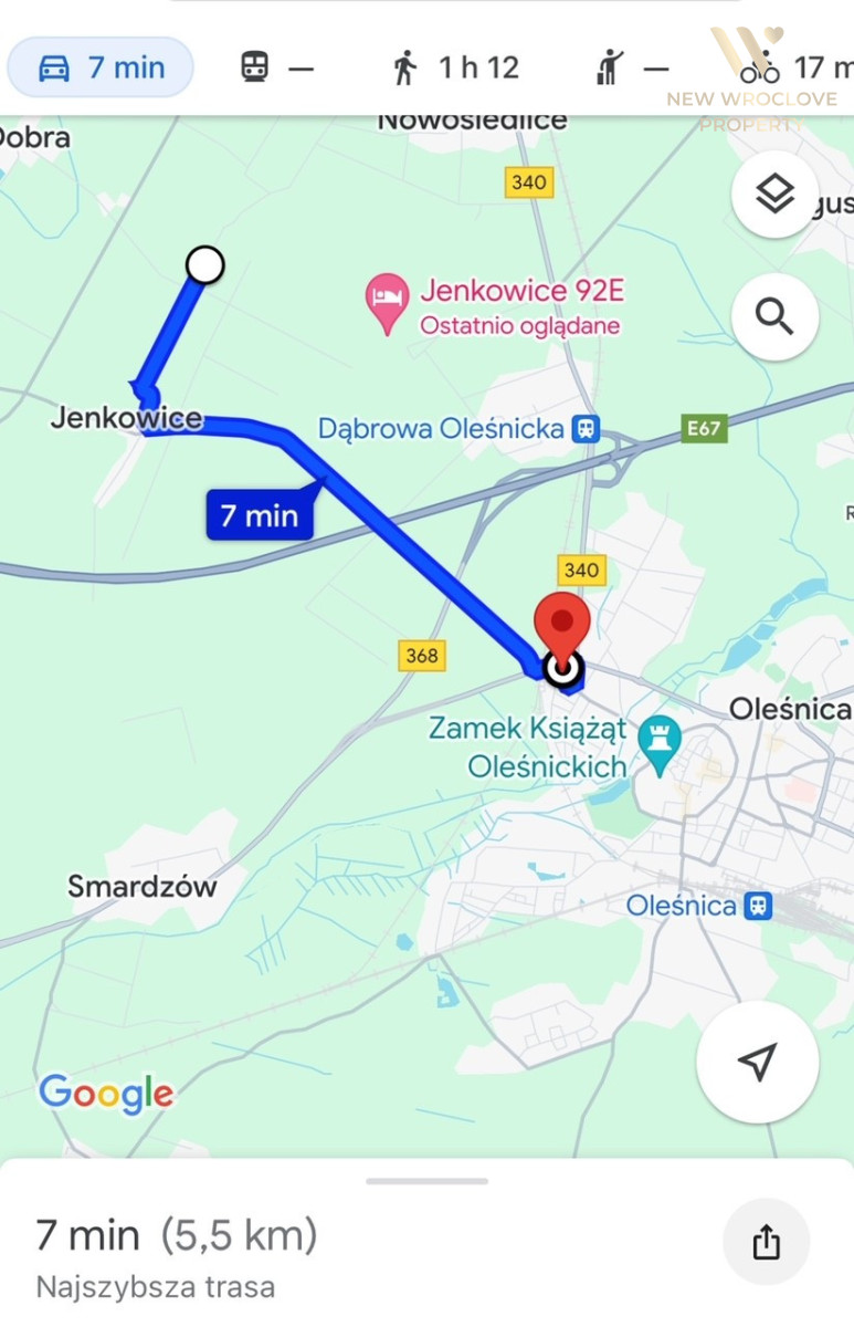 - działka jest położona w cichym miejscu nieopodal drogi asfaltowej, 2km od działki znajduje się autostrada S8, 7 min drogi do Oleśnicy, 20min do Wrocławia