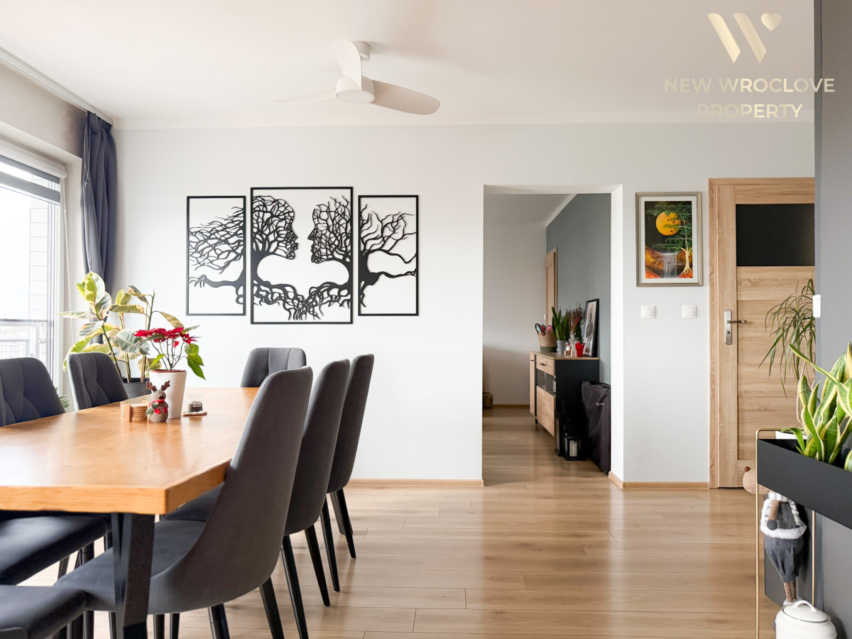 Blok z 2014r, zlokalizowany na Rynku w Siechnicach. Mieszkanie w pełni umeblowane, wysoki standard wykończenia. Z mieszkania widok na panoramę Siechnic.