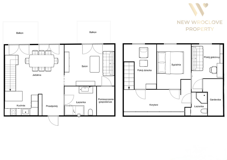 - kuchnia z częścią jadalnianą i wyjściem na balkon
