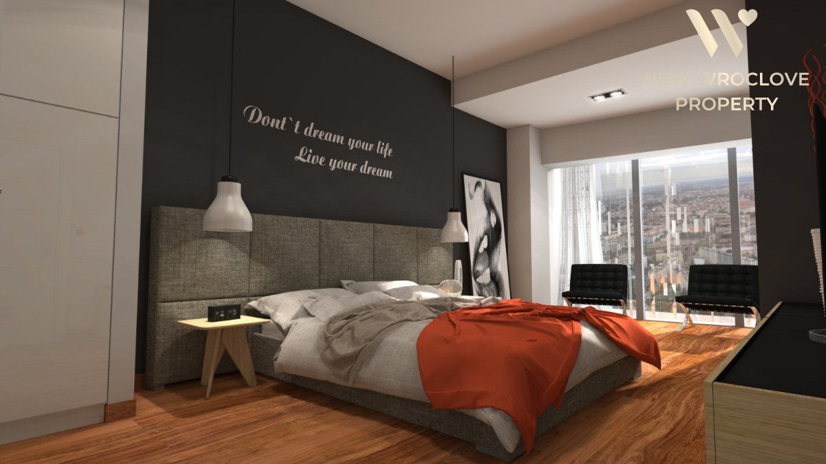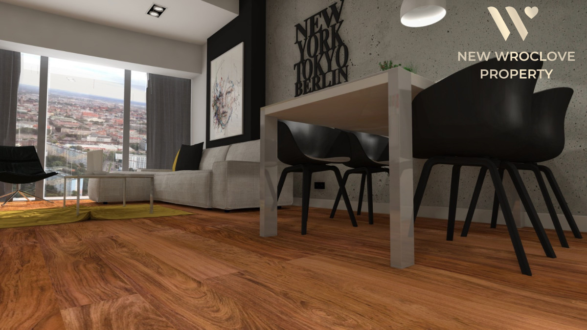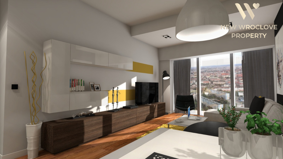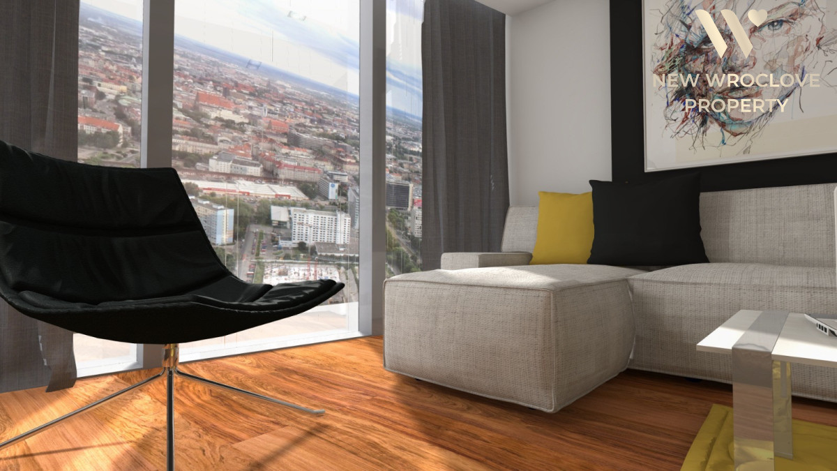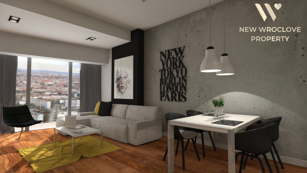 Apartament o powierzchni 102,50 mkw na 45 piętrze z niezwykłym widokiem na Wrocław i jeszcze dalej aż po horyzont.