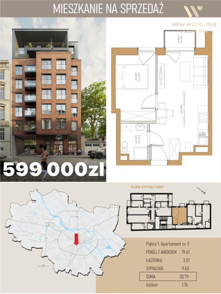 Szanowni Państwo, polecam na sprzedaż mieszkanie - 33,79m², przy ul. Lelewela we Wrocławiu.